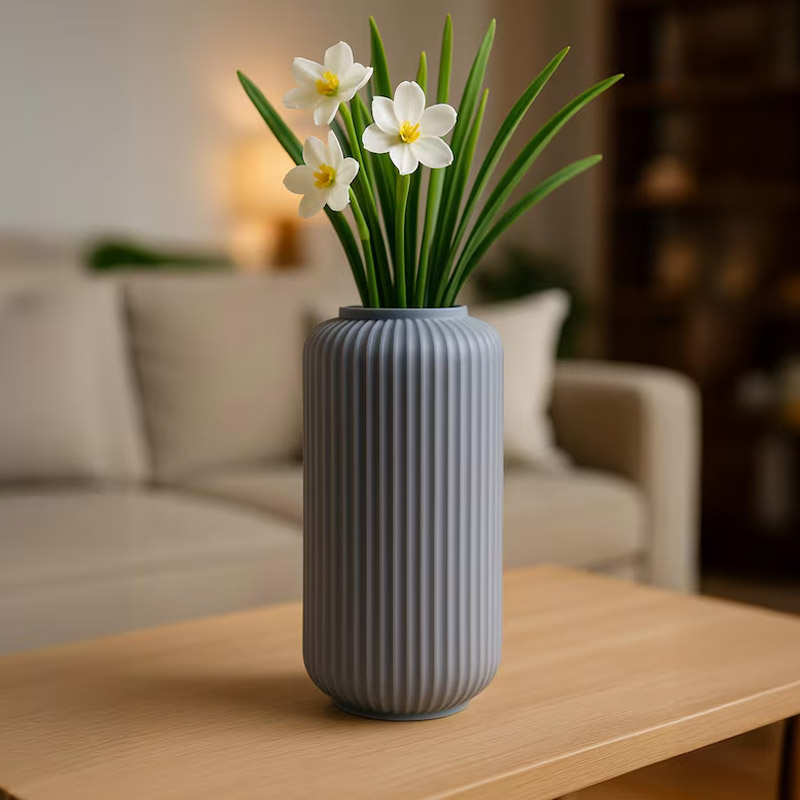 Llega a casa después de un día ajetreado. Sus ojos buscan un punto de paz, un rincón que hable de orden y belleza. Es allí donde se encuentra el Florero Minimalista Acanalado, un objeto que transforma lo simple en sublime.