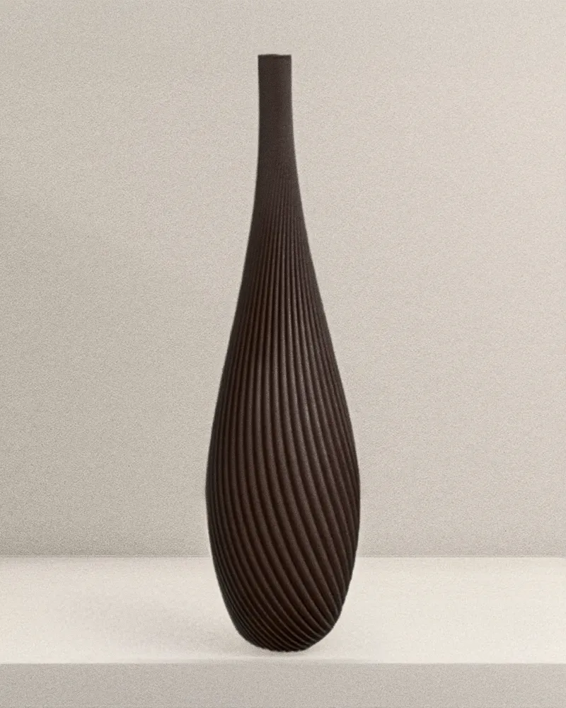 posee una figura de gota con estriado en espiral. Minimal, sutil y elegante para realzar una o dos flores.