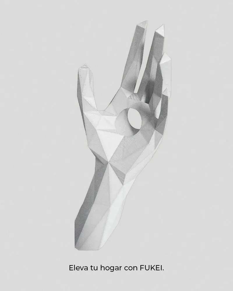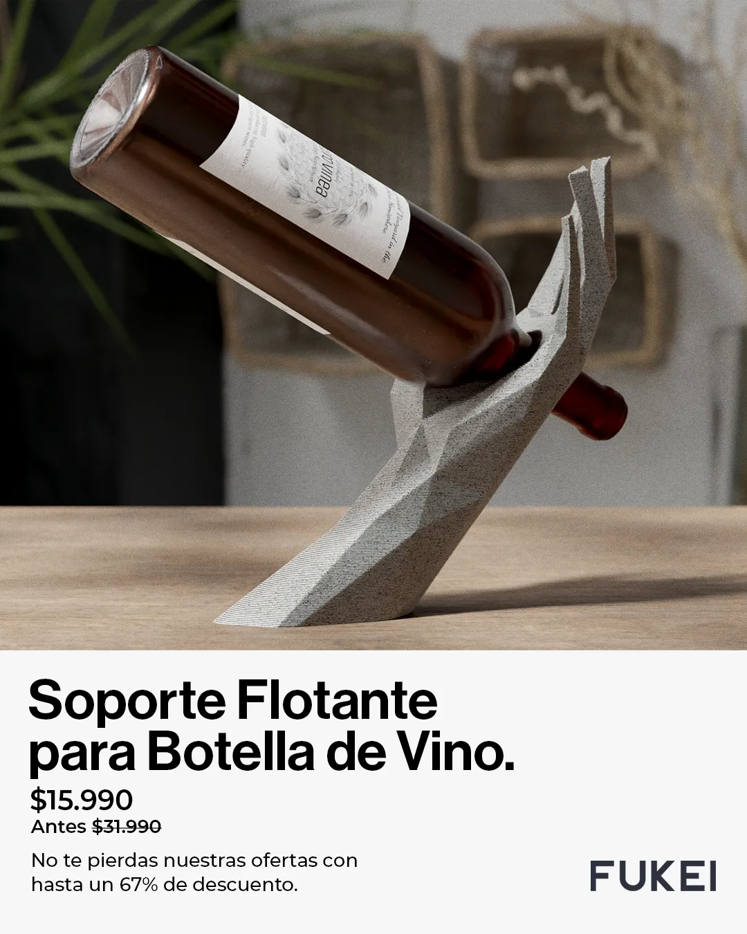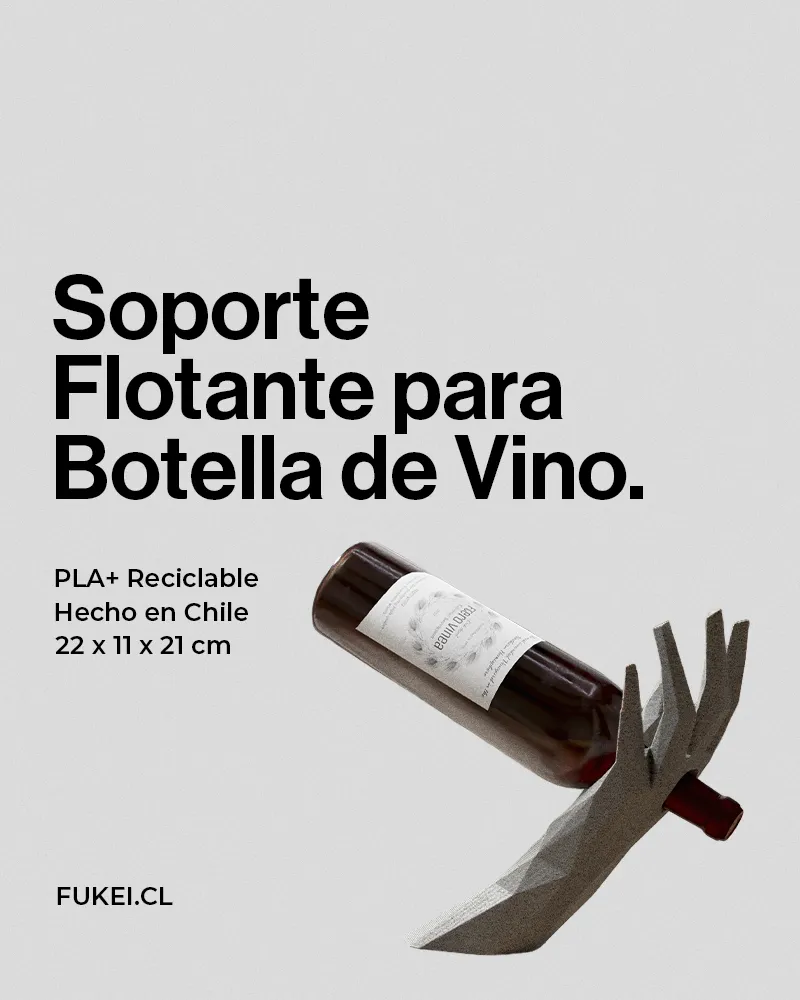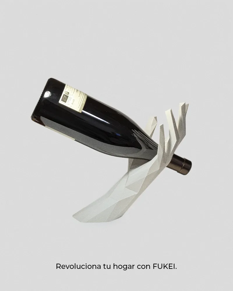 de diseño geométrico que mantiene la botella en un equilibrio visual sorprendente. Su base angular y forma facetada sostienen el cuello con firmeza, creando una pieza escultórica moderna para mesas, barras o comedores.